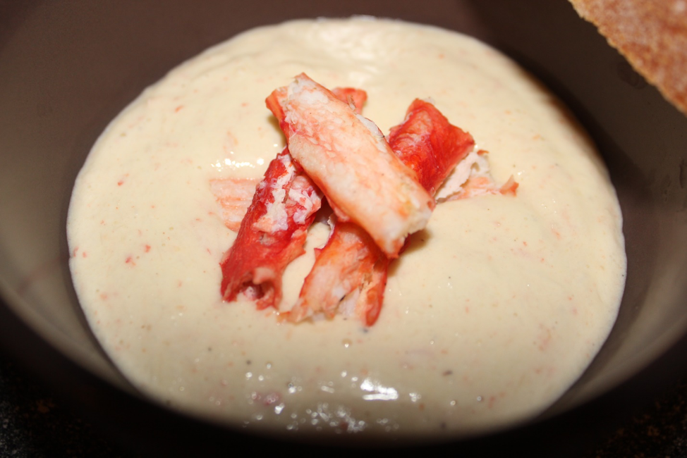 7. Теперь разливаем суп по тарелкам, украшаем крабом и