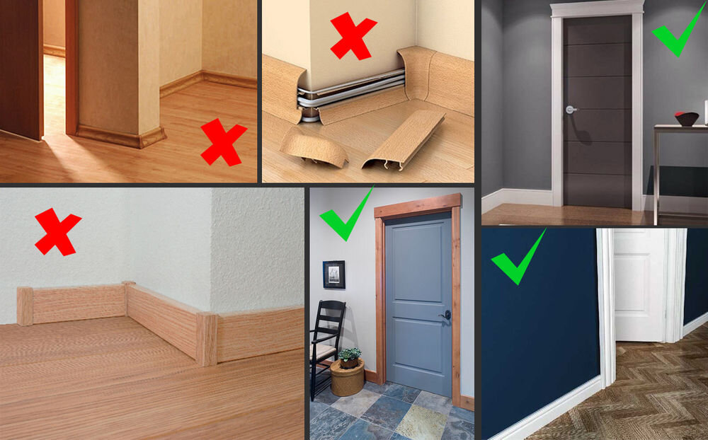Итак, первая ошибка, которую мы будем исключать — это неправильный подход к выбору напольного покрытия и плинтуса. В большинстве случаев я наблюдал, как люди выбирают достаточно дорогое покрытие и дешевый пластиковый плинтус в цвет ламината или линолеума. В то время, как делать нужно ровно наоборот.