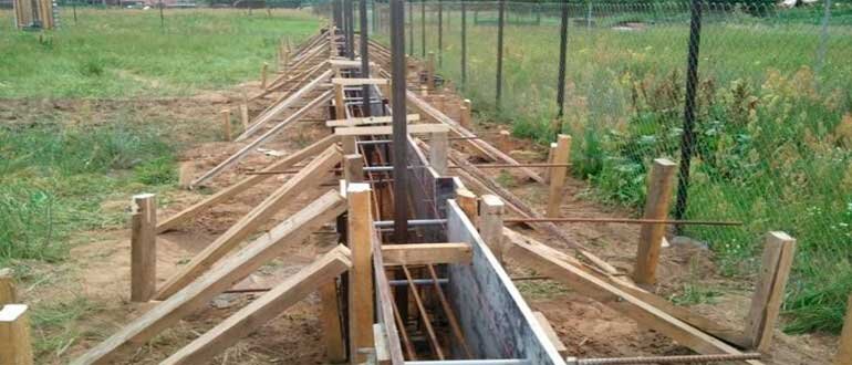 При строительстве заборов можно использовать несколько видов фундаментов:
