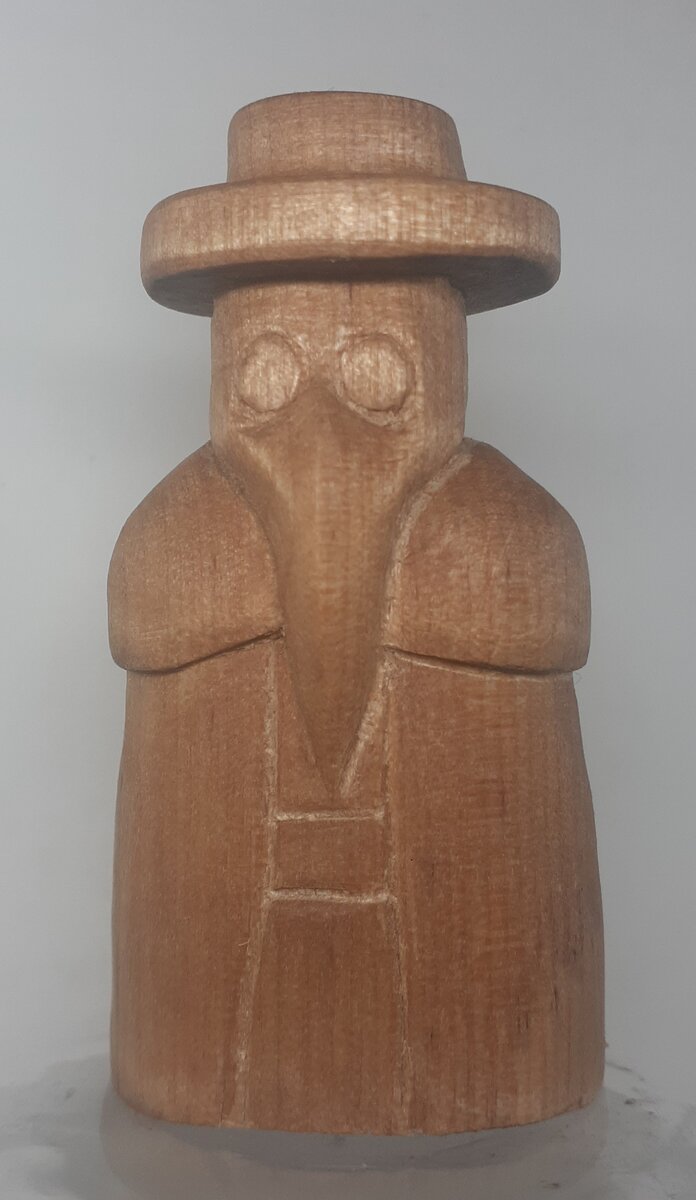Во время разгара карантина, как это ни странно у меня оказалось очень много работы. И, в один прекрасный день, дабы оторваться от работы и передохнуть, я решил вместо второй работы, развлечь себя резьбой. Не знаю с чего, наверное "музыкой навеяло" решил вырезать фигурку чумного доктора.
