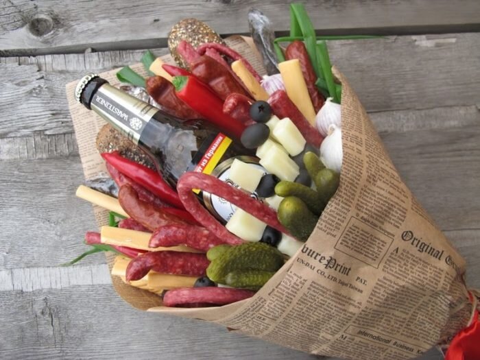 Самый быстрый и полезный подарок, который непременно понравится вашему мужу - это букет из его любимых продуктов! Если коллеге или директору, то тогда придется угадывать.