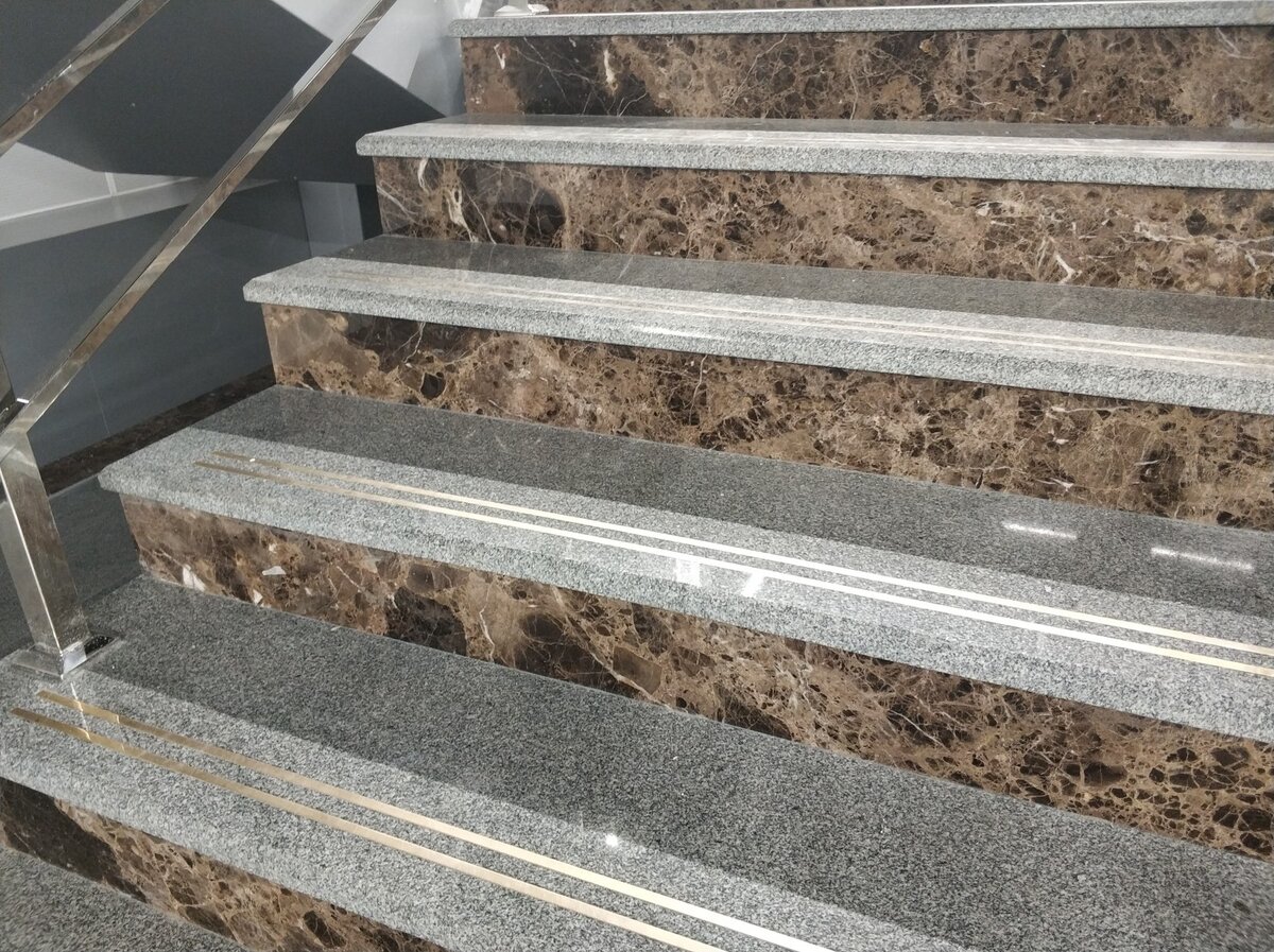 Полоса противоскольжения обычно делается шириной 30-50 мм и может быть фрезерованной, бучардированной или термообработанной. На одной ступени может быть как одна полоса, так и несколько.