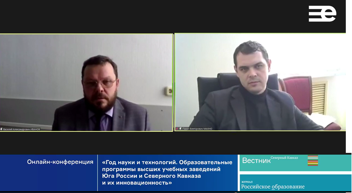 В ходе онлайн-конференции на тему « Год науки и технологий. Образовательные программы высших учебных заведений Юга России и Северного Кавказа и их инновационность », которая состоялась 19 февраля, выступили представители федеральных высших учебных заведений Павел Махно (ЮФУ) и Василий Иванов (СКФУ).