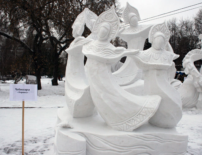 В Сибири в декабре-январе-феврале в разных городах проходят фестивали и конкурсы скульптур из снега и льда.