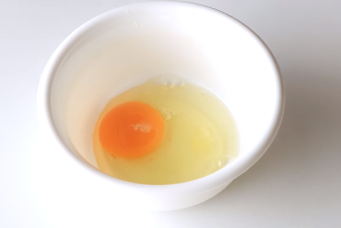 Для начала, приготовим миску, в которой взбиваем венчиком яичко. В целом, взбить яичко можно и обычной ложкой в стакане, но в данном случае использовались именно венчик и миску.