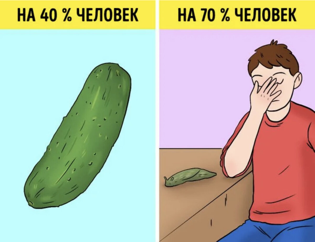 У человека и слизня гораздо больше общего, чем кажется на первый взгляд. Наша ДНК на 70 % идентична с ДНК слизняков. Давным-давно у всех животных был один общий предок, кстати, как и у растений: ДНК человека и банана совпадают на 50 %. Так что человек — это наполовину банан или на 40 % огурец. Все живые существа на Земле немножко родственники, просто в какой-то момент наше развитие пошло по другому пути.
