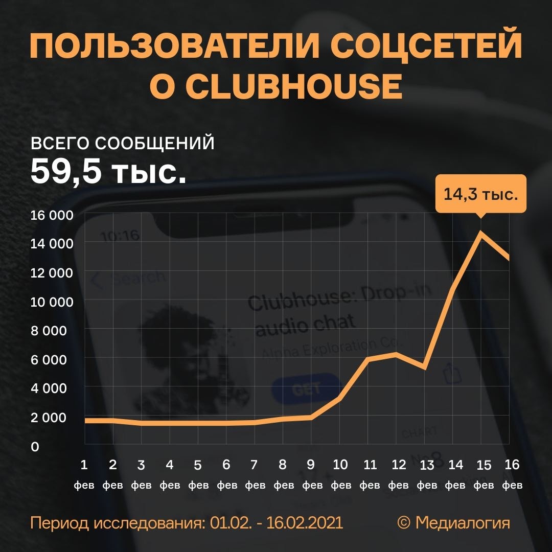 Резкий скачок обсуждений произошел 14 февраля (более 10 тыс.), после того, как Илон Маск пригласил Владимира Путина пообщаться с ним в Clubhouse. “Было бы большой честью поговорить с вами”, — добавил он по-русски в следующем посте.