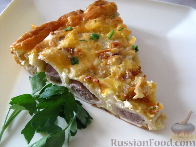 Сверху выложить жареный лук.
