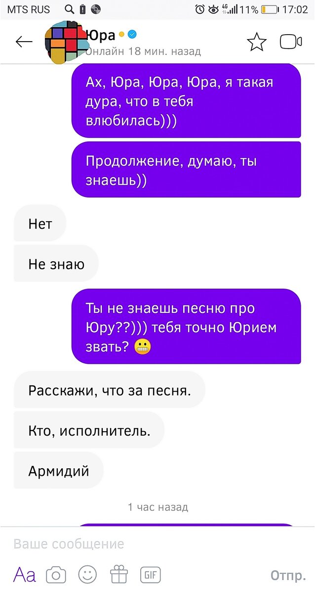 Хм... Армидий... Какое странное имя - подумала я. А в анкете вроде Юра написано. Решила уточнить))