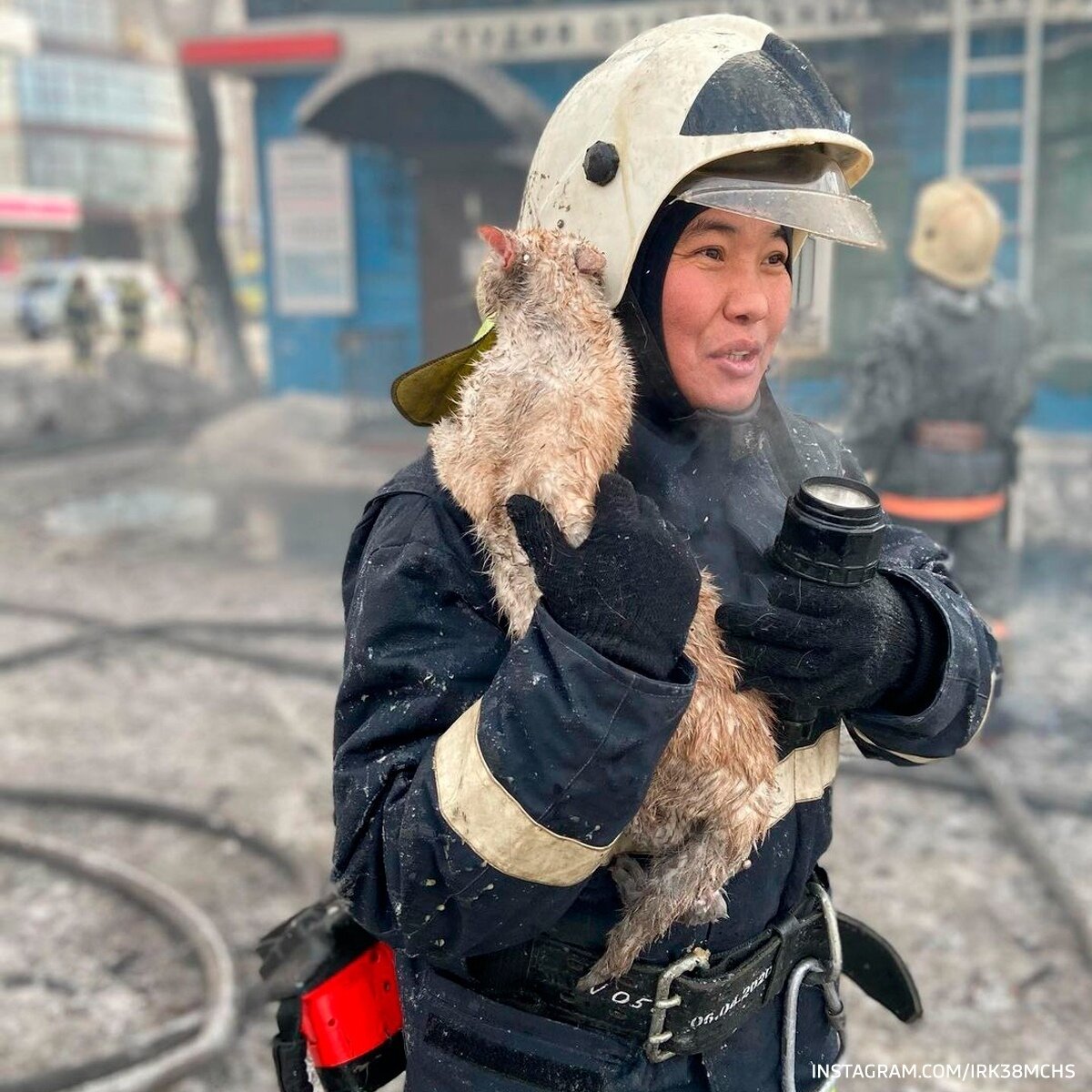 Огнеборцы в Иркутске при тушении пожара в старом деревянном доме смогли обнаружить среди завалов упавшей кровли четвероногого питомца одного из жильцов дома.