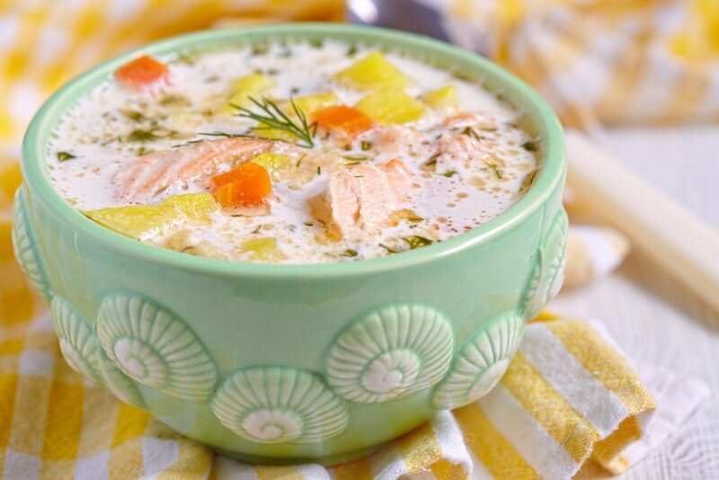 Суп из семги с добавлением сливок – это блюдо скандинавской кухни. Но в разных странах Скандинавии его готовят по-разному. Вот финский вариант знаменитого супа, который называется «лохикейтто». Название супа происходит от финского слова «лосось.