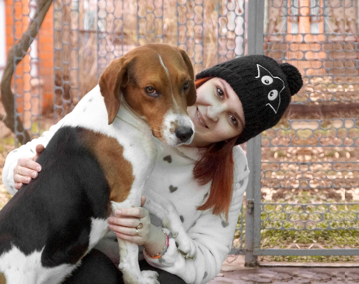 Немного смещаем кадр и центр. И тут уже вроде бы я попадаю немного в поле зрения, но моя собака находится в центре более выраженно, поэтому главной здесь становится снова она...