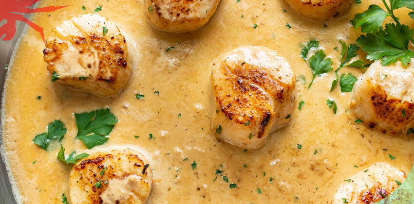 Очищаем чеснок от шелухи, измельчаем его и кладем в сковороду, где жарились морские гребешки. Туда же добавляем вино и лимонный сок. Ставим сковороду на огонь и, помешивая, даем потомиться 1 минуту. После чего достаем чеснок. Добавляем сливки, готовим еще несколько минут. Затем кладем назад сковороду морские гребешки. Выключаем огонь. Добавляем петрушку. Блюдо готово. Приятного аппетита!