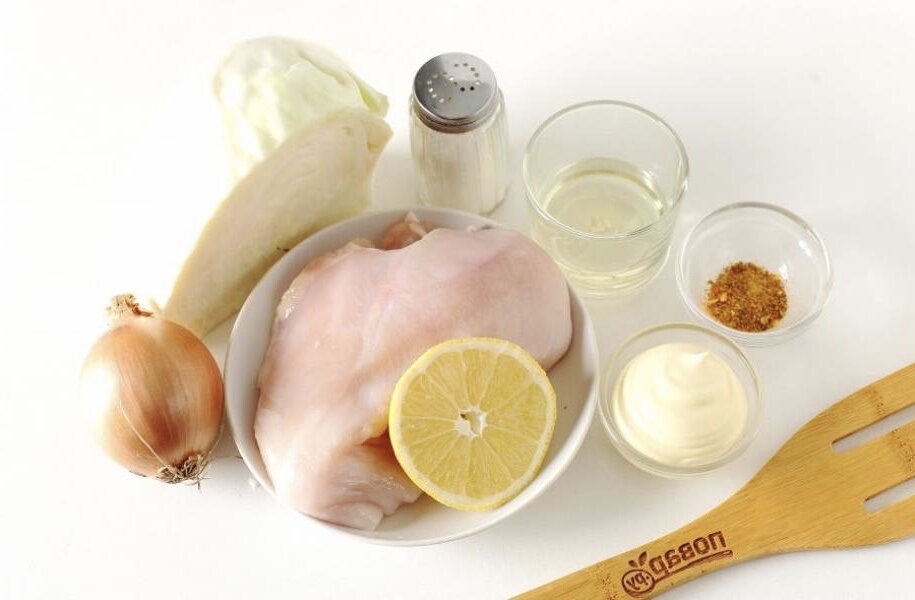 |Вкусный и сочный салат из свежей капусты, нежного куриного филе и обжаренного лука — прекрасное дополнение к любым блюдам. Он быстро и просто готовится. Готовьте больше — будут просить добавки!
