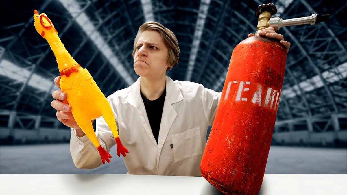 Ну а в этом ролике мы подумали: гелий меняет голос человека… Но сможет ли он изменить звук, который издают другие предметы? Например…