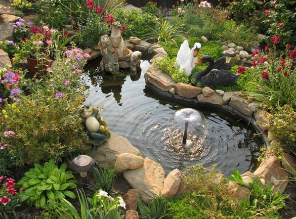 Даже небольшой прудик на дачном участке совершенно по-другому заиграет в компании с фонтанчиком или водопадом. Чтобы получить эффект текущей воды, понадобится насос.