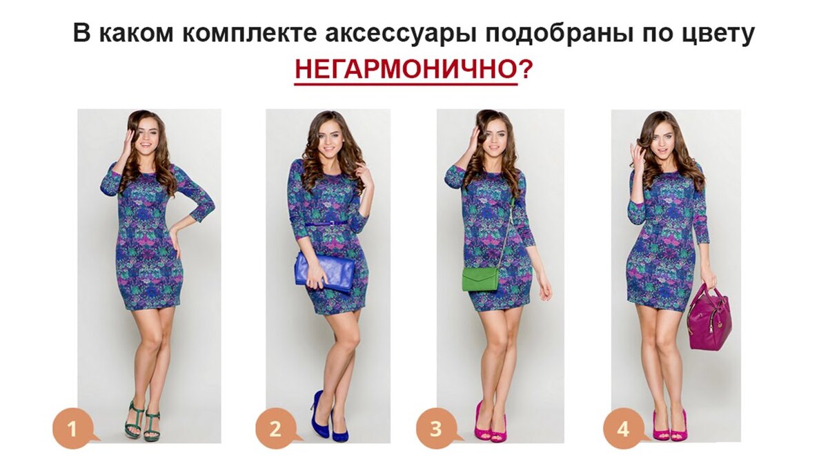 Аксессуары в наряде должны перекликаться между собой – это образовывает целостность образа. Примером такого акцента может быть классическое сочетание сумочки и туфель одного цвета или бижутерии и шарфа. Однако не стоит делать цветовой акцент на всех аксессуарах сразу, двух деталей будет вполне достаточно. Форма аксессуаров также должна подчеркивать основной мотив в одежде. Скругленное декольте отлично сочетается с круглыми серьгами, а костюм со строгими линиями – с прямоугольной сумкой. Стиль аксессуаров также должен подчеркивать стиль одежды, а не спорить с ним. Если вы к деловому костюму подберете пляжную сумку, это будет выглядеть, по меньшей мере, странно. Деловой костюм требует строгости, а легкое летнее платье – легкомысленности. Иногда дизайнеры одежды позволяют себе некоторые вольности в этом правиле, однако они профессионалы своего дела, и, если вы не уверены в выборе, лучше всего обратиться к классическим правилам. И последнее: как бы хорошо вы ни подобрали аксессуары, не забывайте о чувстве меры. Аксессуары – мелкая деталь одежды, но большое количество этих мелочей будет отвлекать все внимание на себя, и вы потеряетесь в них. Именно поэтому лучше ограничиться минимумом украшений, чем походить на цыганку.