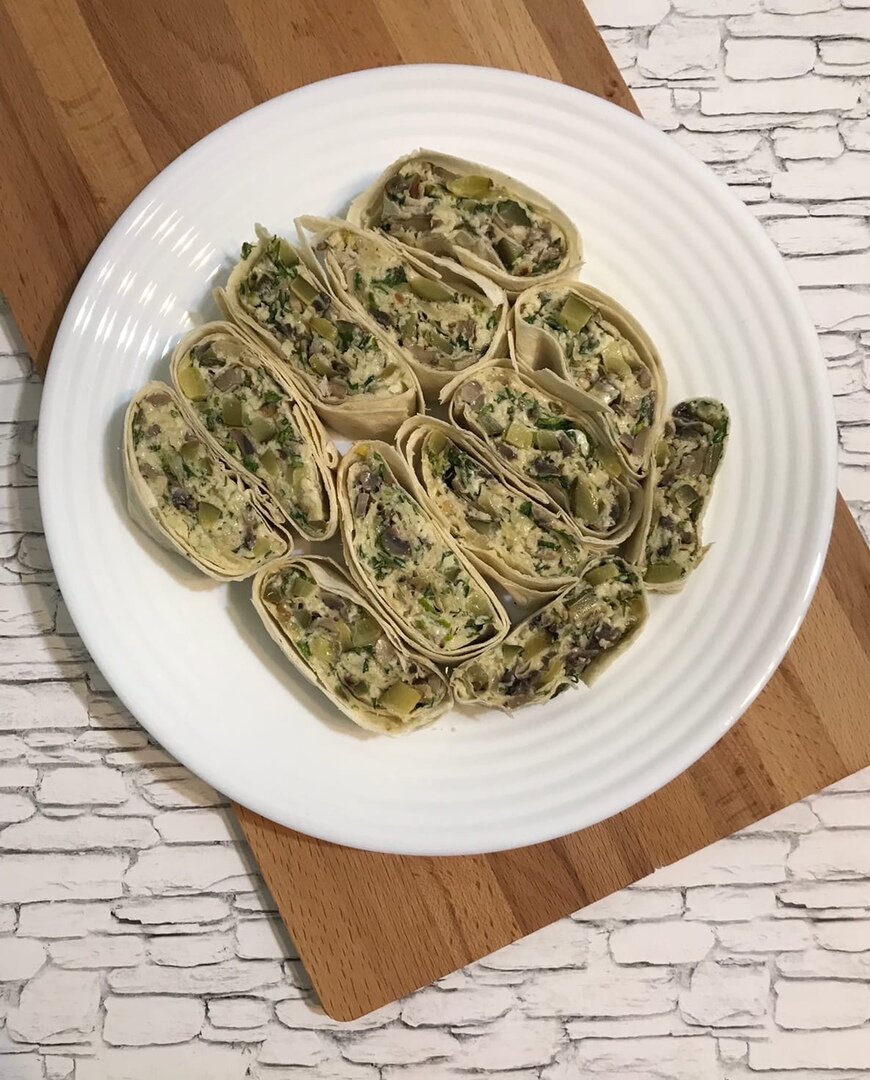 10. Аккуратно, но плотно сворачиваем лаваш в рулет.