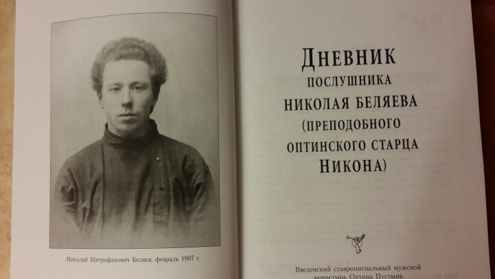 У меня дома вот уже много лет хранится замечательная книга - "Дневник послушника Николая Беляева, которого мы знаем как Никона, последнего старца Оптинского.