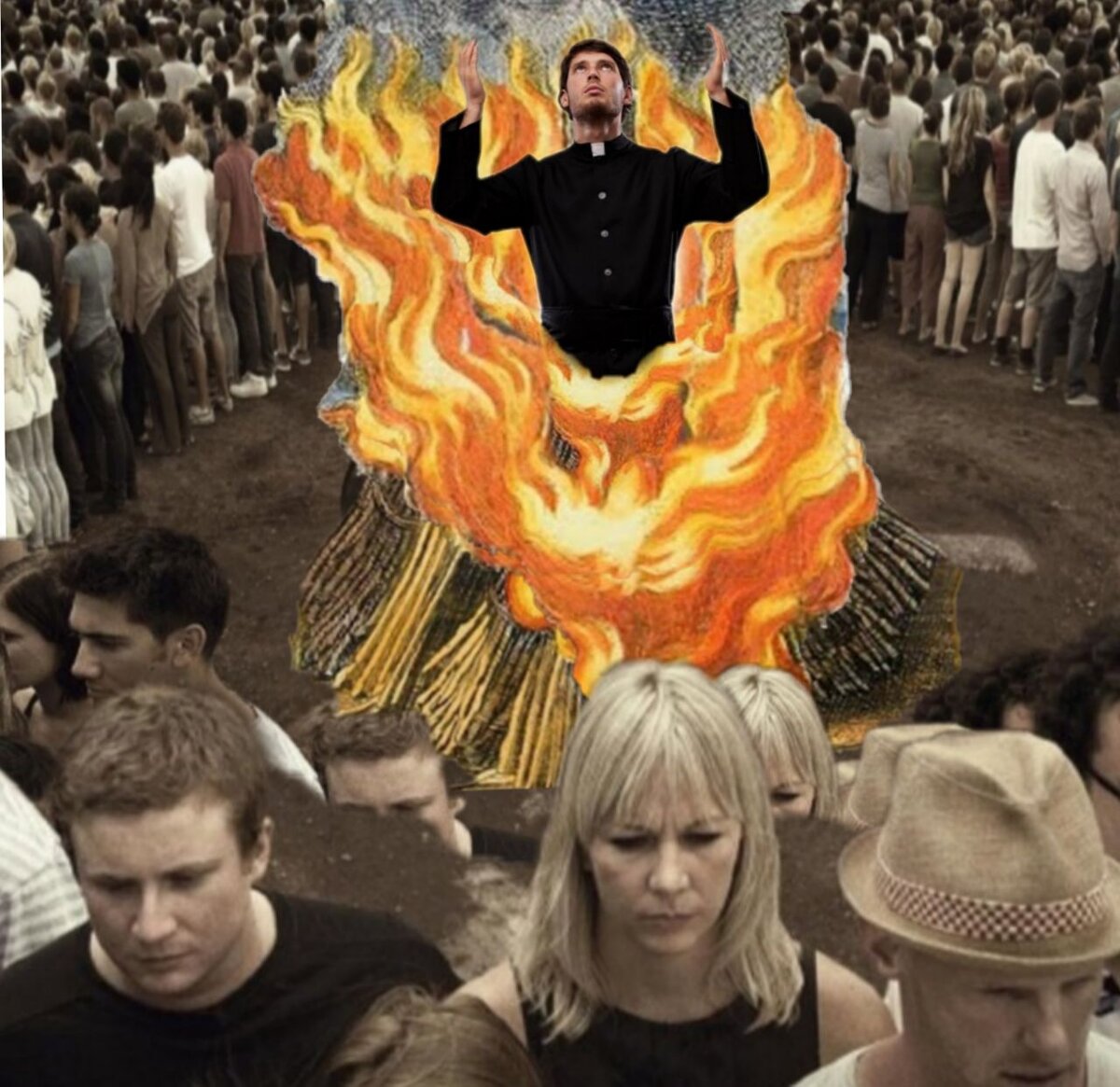 А это очень страшно. В средние века за несогласие просто сожгли бы. А сейчас церковь откажет в спасении. Ну как откажет? Церковь вообще не решает вопросы спасения. Это дело Бога. Но она будет считать отлученным от Бога всех, кто думает не так, как надо.