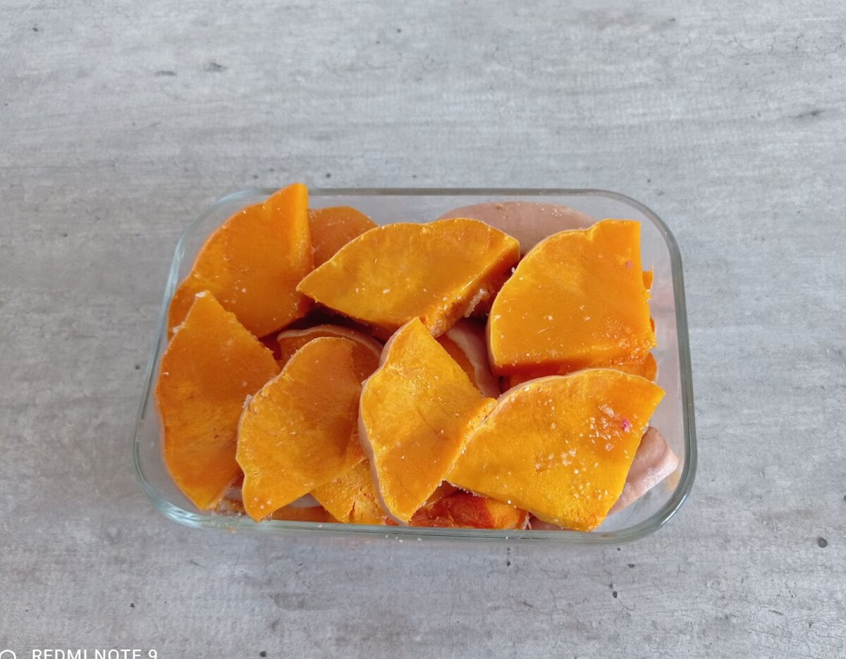 Помыть тыкву. Порезать ломтиками.