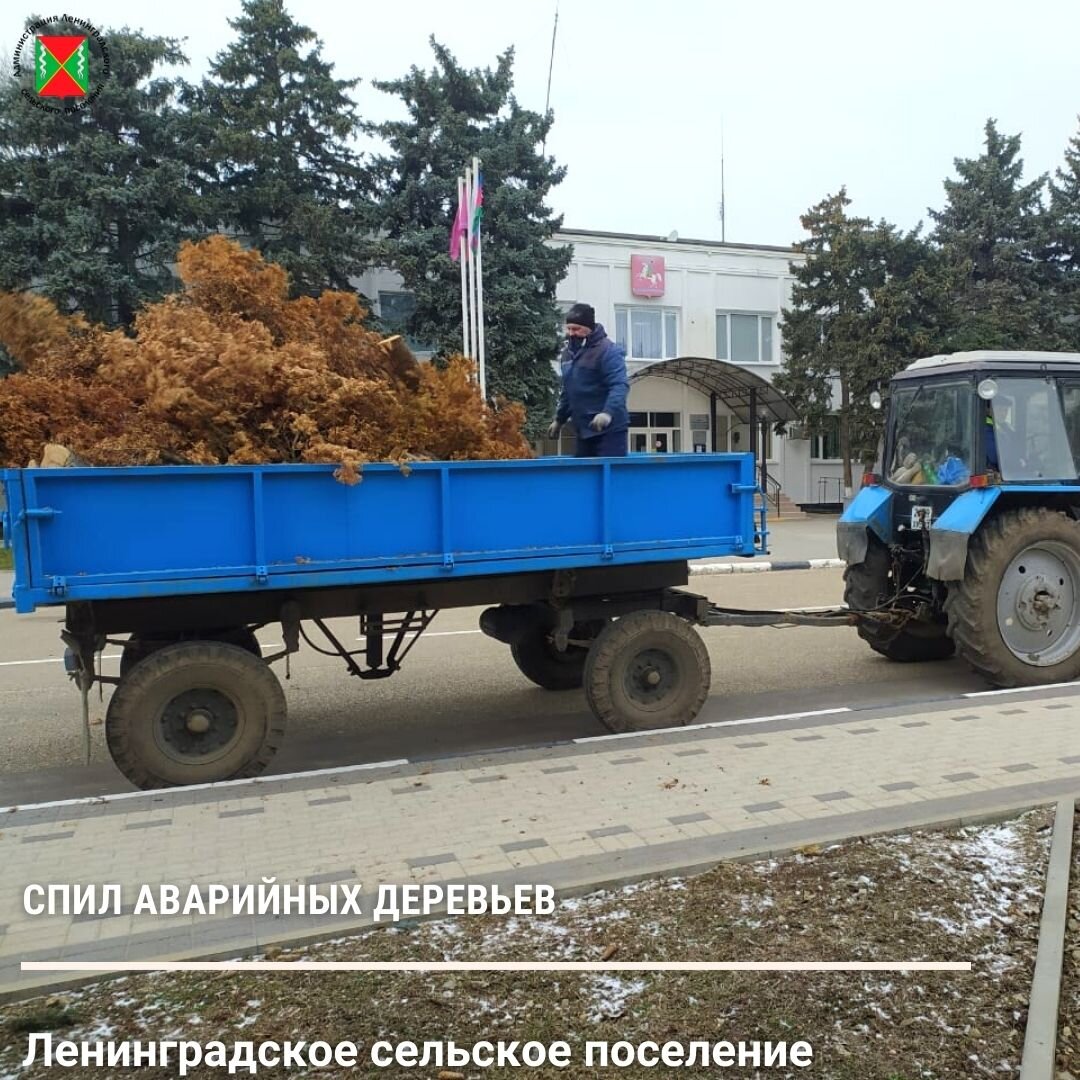 В рамках работ по благоустройству станицы Ленинградской рабочей бригадой МКУ «Отдел обеспечения основной деятельности Ленинградского сельского поселения» проведен спил засохших деревьев туи на территории Октябрьской площади, центрального парка, ул. им. 417 Дивизии, ул.Набережной.