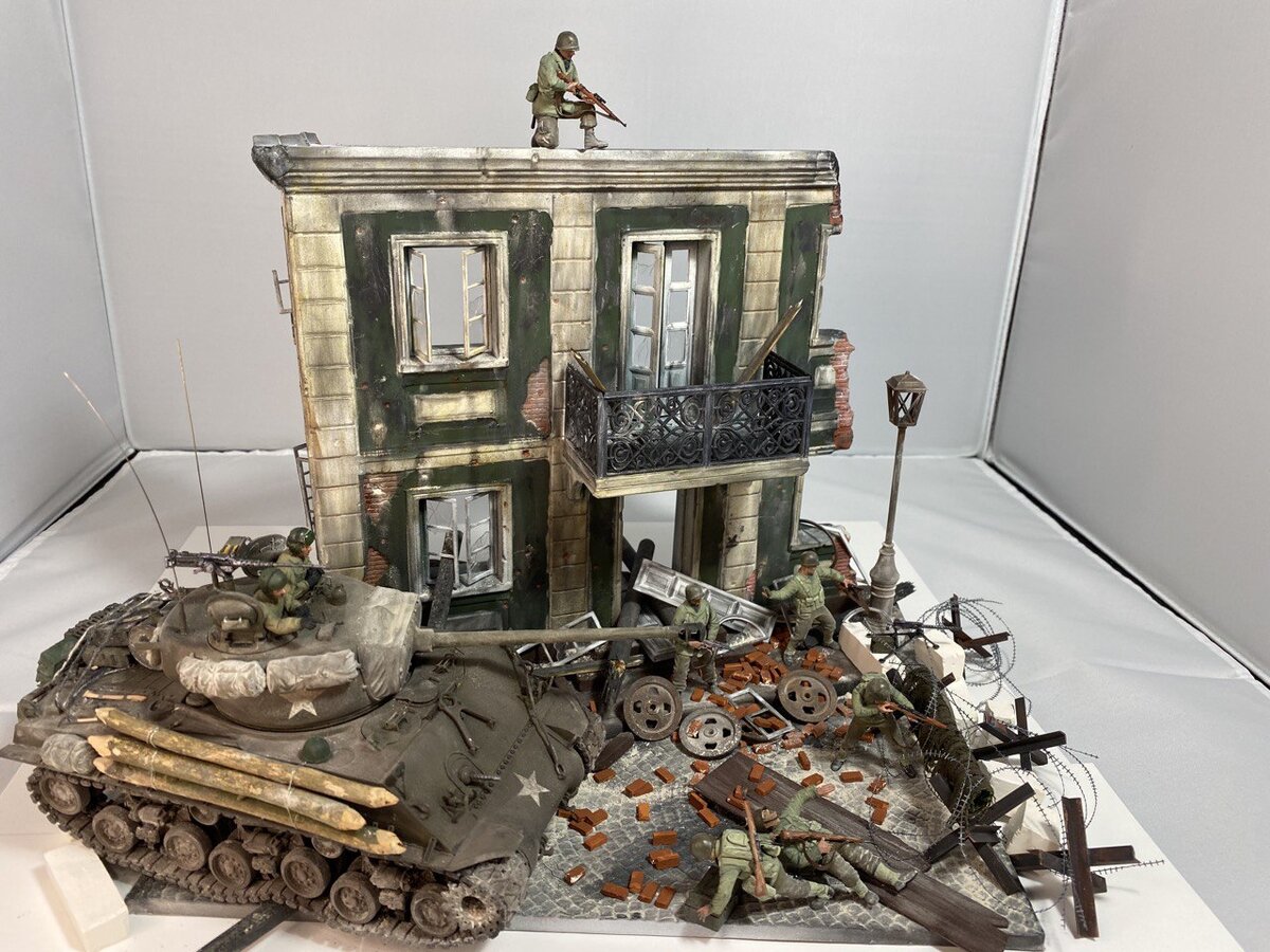 Sherman от компании RFM, здание от MiniArt, солдаты от MasterBox.