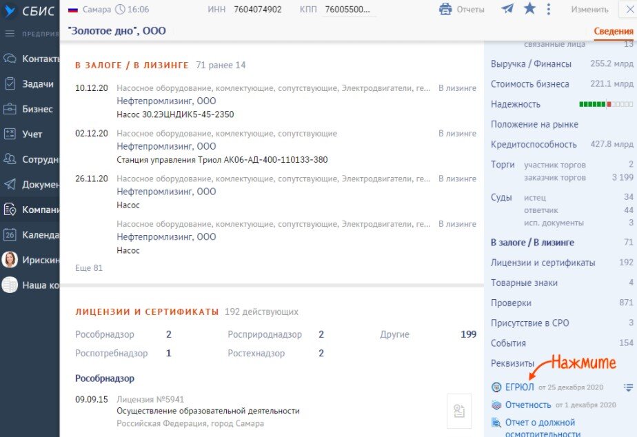 Любая компания имеет право просматривать и сохранять выписку ЕГРП. Чтобы посмотреть выписку на сайте СБИС, нужно: