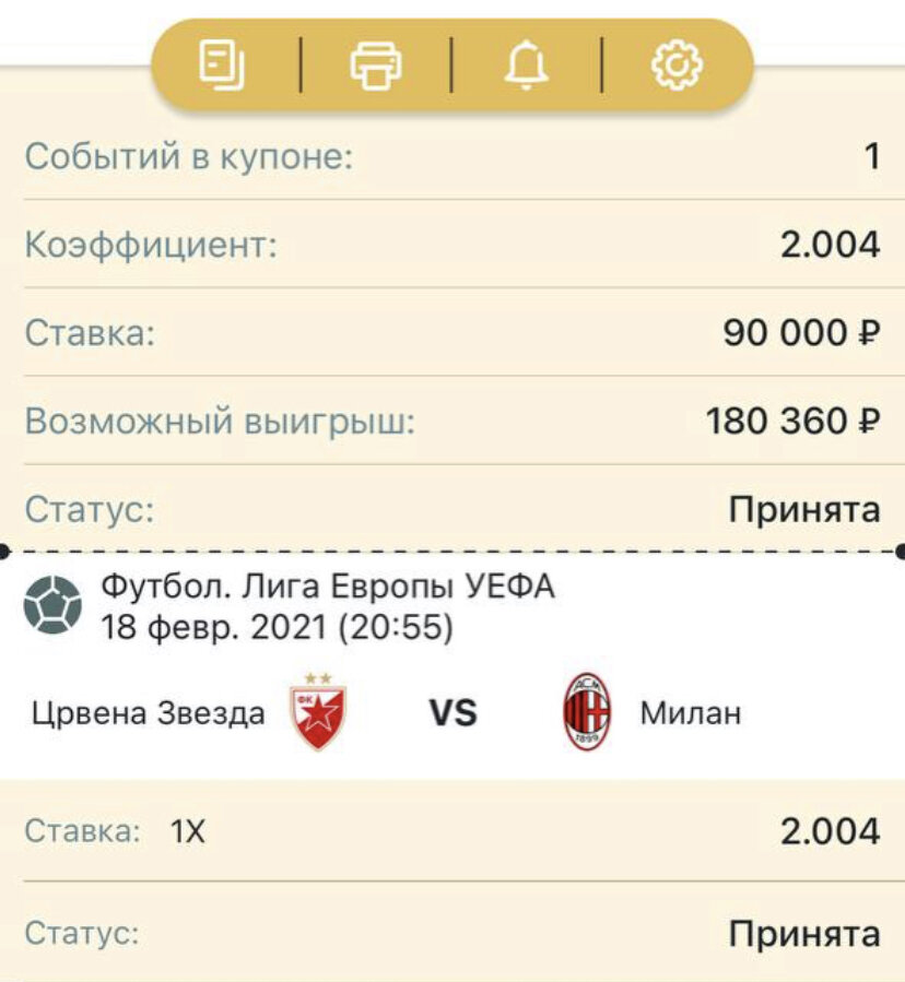 Мой прогноз на футбол Црвена Звезда - Милан 18.02.21