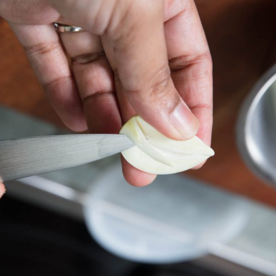 Очищаем чеснок и проводим некоторые махинации.