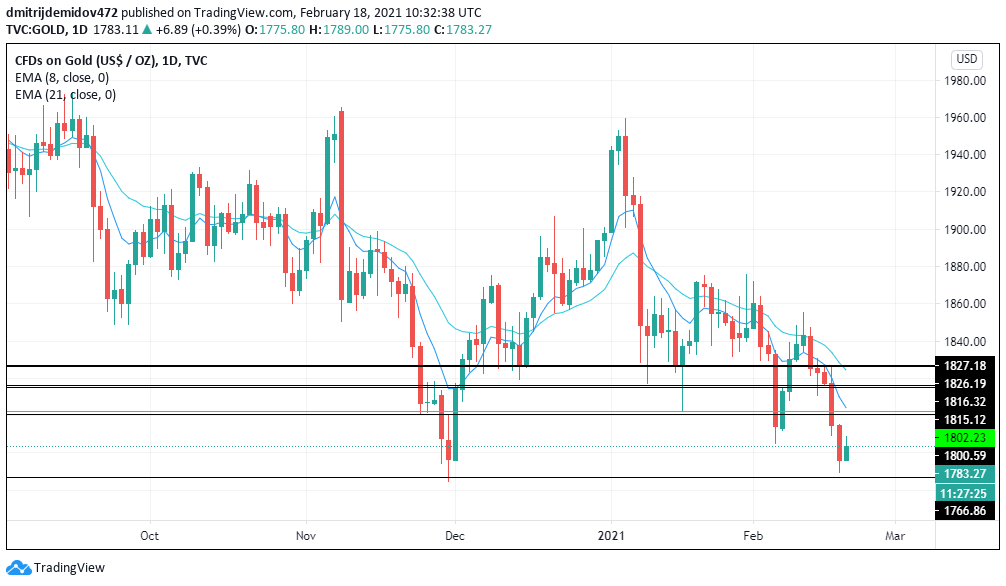 Вчера золото сильно просело к локальному минимуму, который вы видите на графике. Запомните, паниковать не стоит. Если вы вошли в долгосрок и среднесрок, то вам нужно взять себя в руки и не дергаться. Не нужно делать лишних движений, из-за которых будут потеряны деньги.