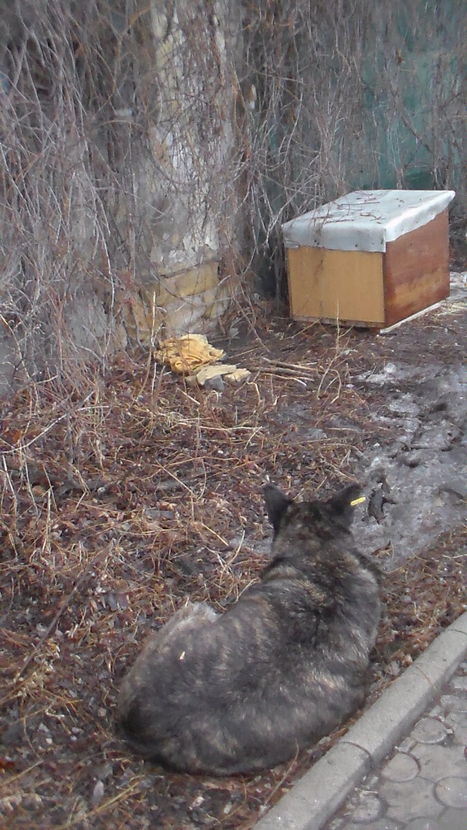 Давеча решила я в конце концов отснять прекрасную будку, которую нашей остановочной собаке поставили, соответственно, на остановке. Занавесочка на двери! Давно поставили - несколько месяцев назад.... Ну вот: отсняла будку, отсняла собаку, да ещё будку за магазином, новую -та попроще...