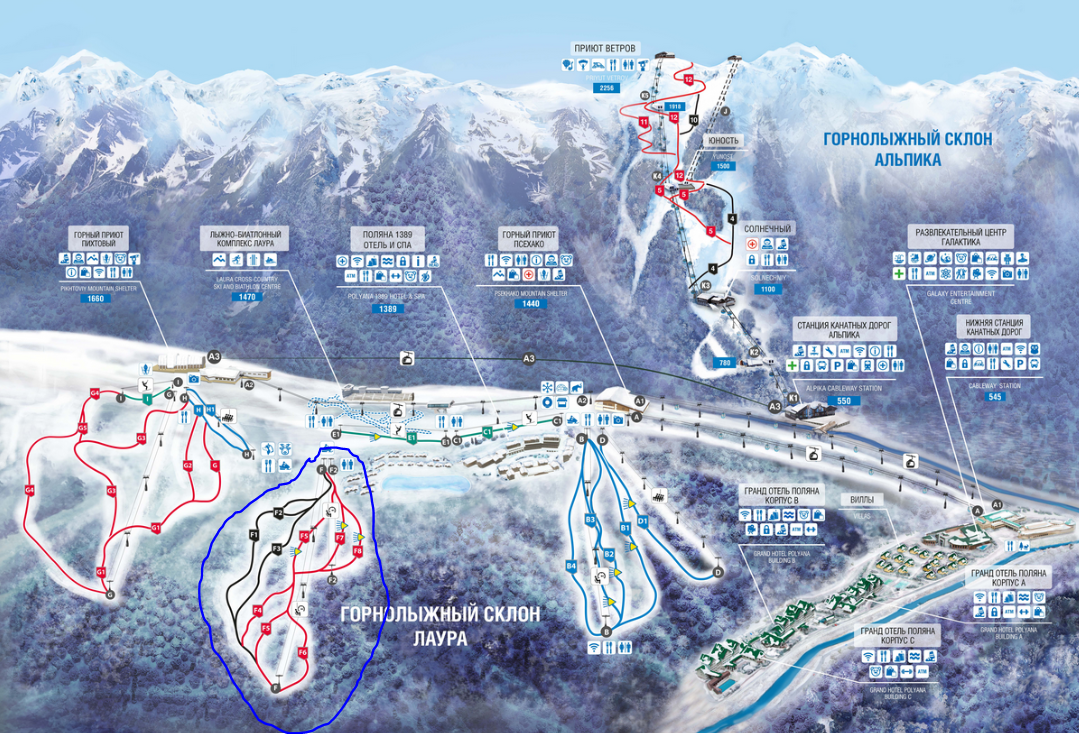 Стандартная схема доезда до зоны F, обозначенная на текущей карте курорта, - нужно