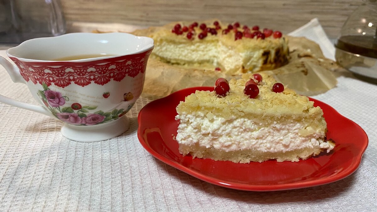 Разогреваем духовку до 220 градусов и готовим ватрушку 30-40 минут. После приготовления даём немного остыть и можно пить чай 🫖, по желанию украшаем любой ягодой.