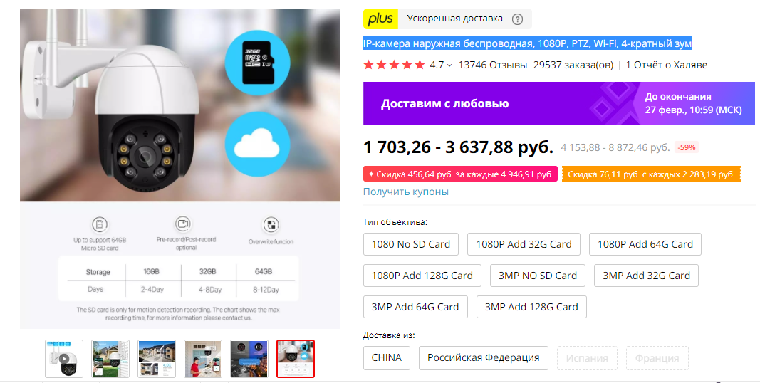 - IP-камера наружная беспроводная, 1080P, PTZ, Wi-Fi, 4-кратный зум