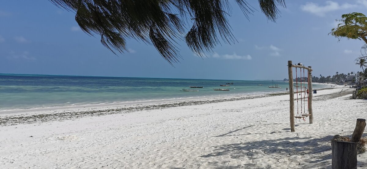 Пляж Джамбиани расположен на восточном побережье острова Занзибаре, недалеко от знаменитого пляжа Паже, на котором катаются сотни кайтсерферов. Джамбиани - это тихий красивый пляжик, который ничем не хуже и не лучше остальных пляжей на Занзибаре. Тут и вода не сильный бриллиант, и такие же, как и везде приливы и отливы, и максимально средний по структуре и по белизне песок. Конечно, если вы приехали на Занзибар и вашим первым местом посещения станет этот пляж, то вы, безусловно, скажете: "Черт, как же он красив". Но посетив остальные пляжи, вы поймете, что ничего особенно тут нет. И, все же, некоторые отличительные особенности мы нашли. 1. Скука. Тут реально нечего делать, просто лежать на песке, качаться на качелях и смотреть на горизонт. Никаких развлечений нет, кроме, как посидеть в местных полупустых барчиках или поиграть в футбол на пляже вечером с местным населением. Еще можно посмотреть, как местные закапывают водоросли в песок :). 2. Отливы гигантские. То ли мы были на пляж