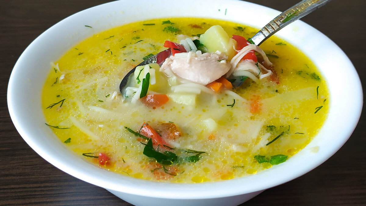 Этот куриный суп очень популярен в Болгарии, там его называют «пилешка-супа ». Готовится такой суп обязательно с вермишелью, а изюминкой является необычная заправка из смеси: кефира, яичного желтка, муки и сока лимона. Сливочно-кремовая консистенция и нежный вкус получается без единой капли сливок, все дело в заправке!