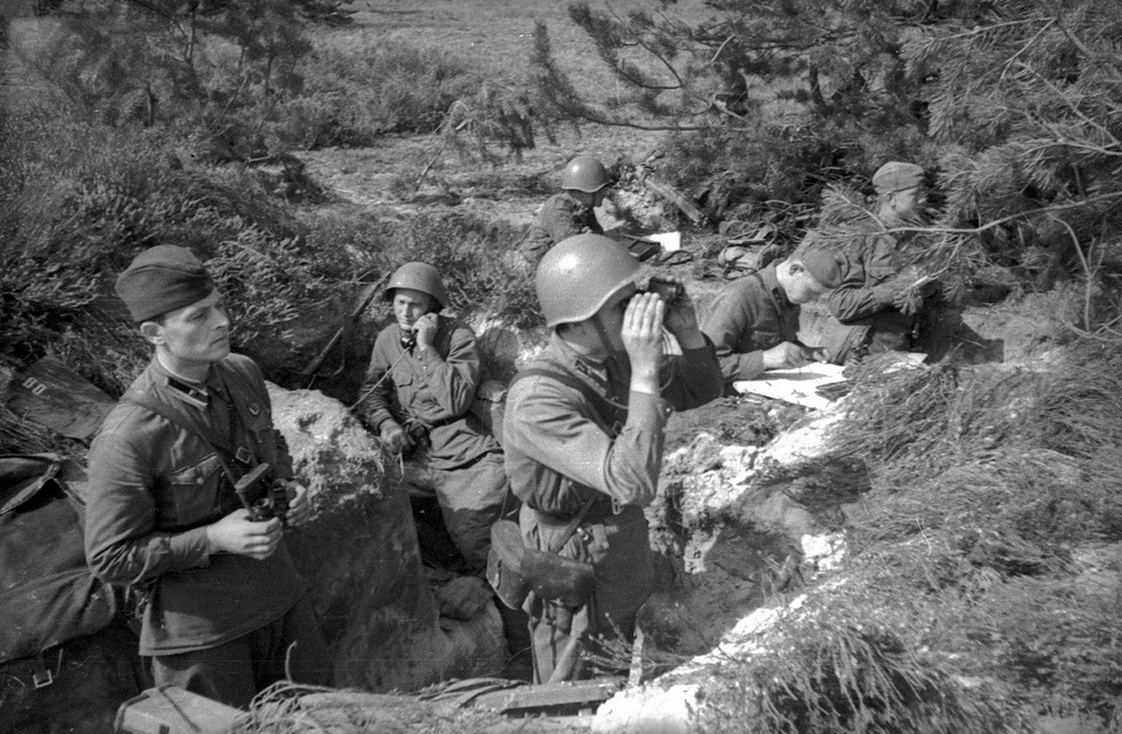 Человеку, знакомому с спецификой армейской логики и психологии, догадаться будет нетрудно, а остальным поясню. Есть в армии принцип – всё должно быть единообразно и по требованиям уставов и наставлений. А тут в редакцию центральной военной газеты с показных учений Западного Особого военного округа, да под руководством самого Народного комиссара обороны, приходит фотоснимок, на котором запечатлены семь военных, три из которых на боевых позициях без стальных шлемов. Даже если закрыть глаза на пресловутое единообразие, налицо нарушение требований безопасности при проведении стрельб боевыми боеприпасами. Мало того, у командного состава еще и недостатки по форме одежды, выраженные в отсутствии нарукавных знаков на гимнастерках и эмблем рода войск в петлицах! Плюс командирская полевая сумка, чехлы какие-то на бруствере валяются… Одним словом, нет порядка на командном пункте. «Поэтому нужное лучше дорисовать, а не нужное зарисовывать», – вероятно подумал редактор. Ведь он тоже был человек военный…