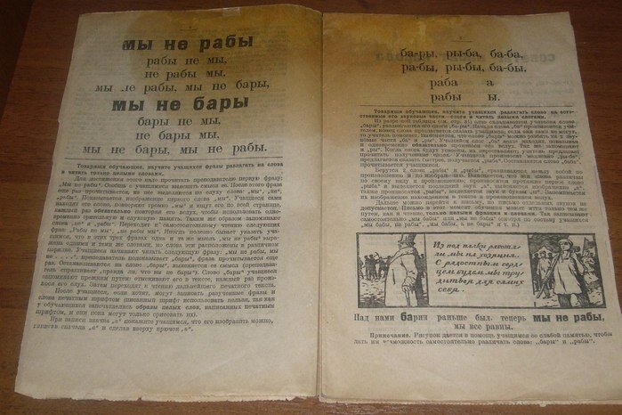 "Во втором классе советские школьники с помощью чтения удваивают свой словарный запас до 4000 слов. В третьем классе, благодаря замечательному 384-страничному учебнику – до 8000 слов. Бумага дешевая, зато проза – богатая. Третьекласснику даются начальные знания обо всем, от рек и стали до лягушек и ветра. Им преподают основы анатомии и медицины и как взрослым объясняют, что такое кости, мускулы, легкие, сердце, ухо, инфекционные заболевания и шесть основных бактерий, причем весь материал подкрепляется иллюстрациями. В учебник для чтения включены рассказы лучших писателей – Чехова, Тургенева, Горького.