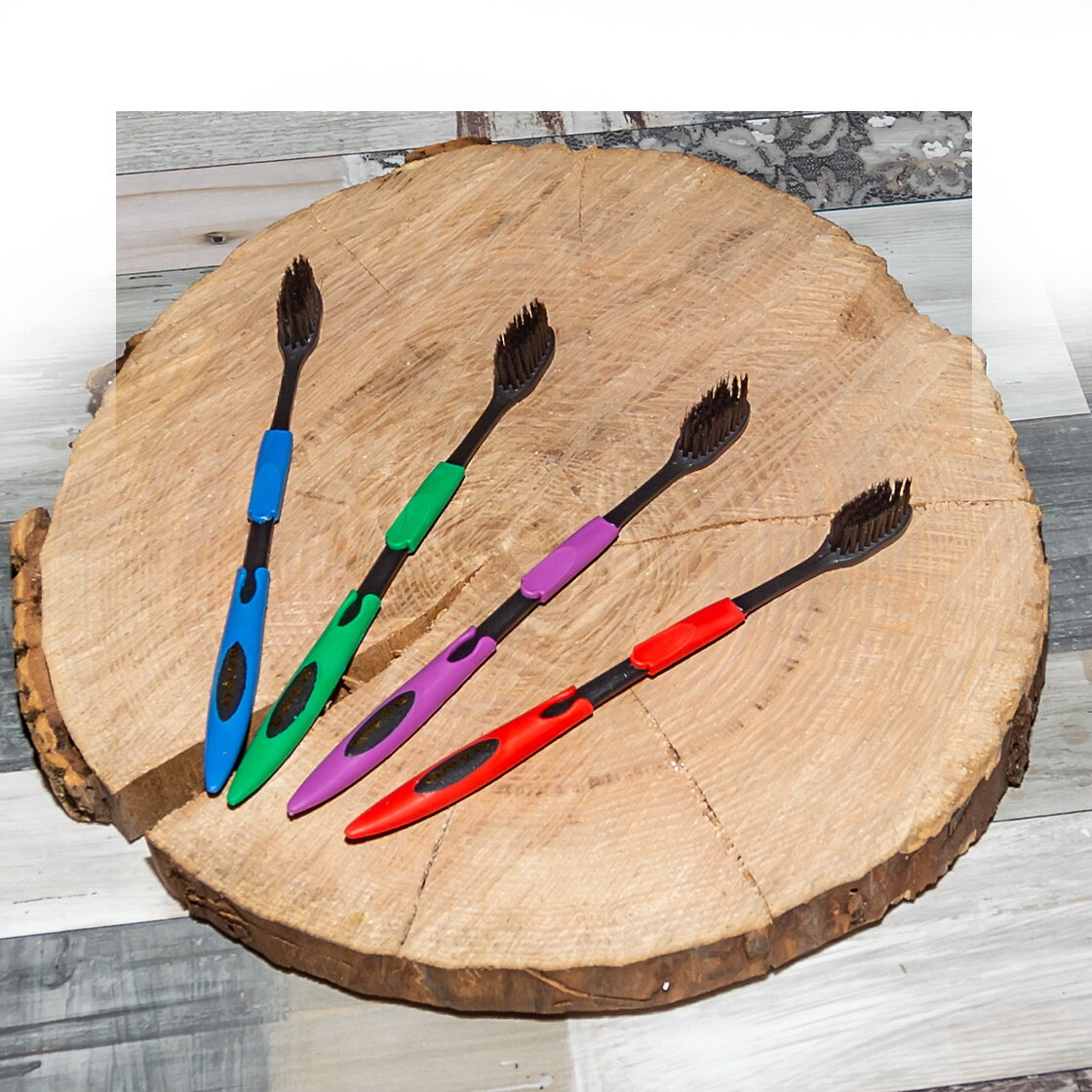 Щетина из бамбукового угля, который обладает антибактериальными свойствами, и даже помогает отбеливать зубы, что особенно понравится кофеманам. Щетинки средней жесткости, разной длины, благодаря чему прекрасно проникают в труднодоступные места и хорошо массируют десны.
