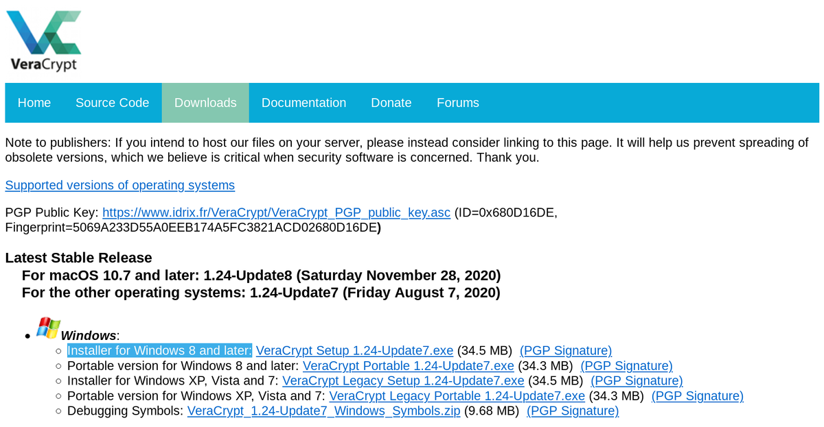 1. Зайти на сайт VeraCrypt: https://veracrypt.fr/en/Downloads.html