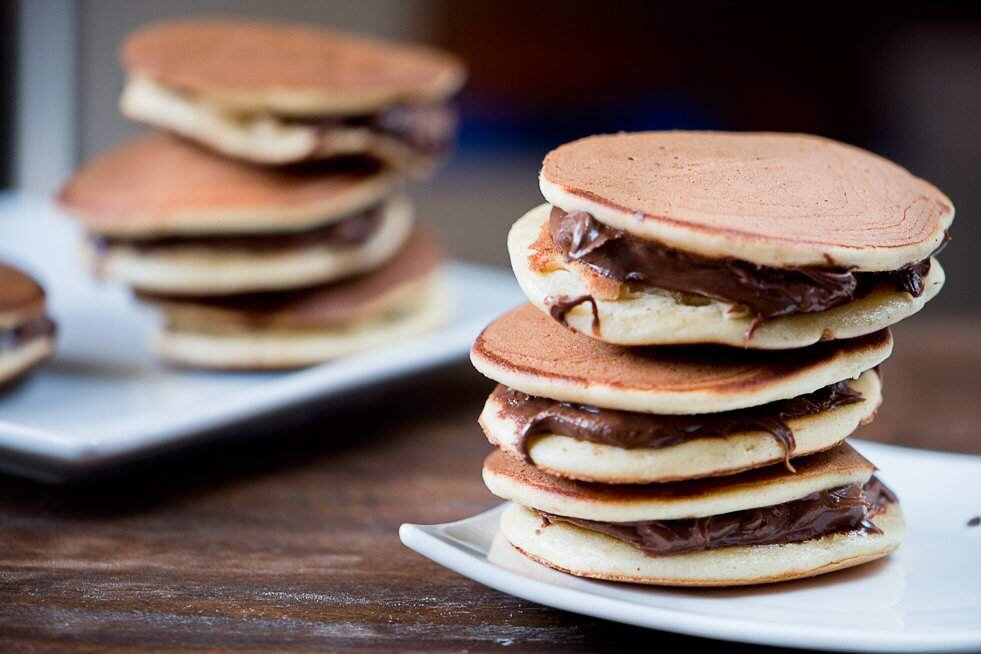 Дораяки — один из самых популярных национальных японских десертов. Он представляет собой два медовых бисквитных оладушка, скрепленных бархатистой пастой из красных бобов адзуки. Кстати, бисквит, который японцы называют «кастелла», может быть отдельным лакомством. Он очень влажный и плотный, ярко-желтого цвета внутри, с аппетитной золотисто-коричневой корочкой снаружи. Дораяки в Японии готовят на каждом шагу, иногда прямо посреди улицы на радость прохожим.