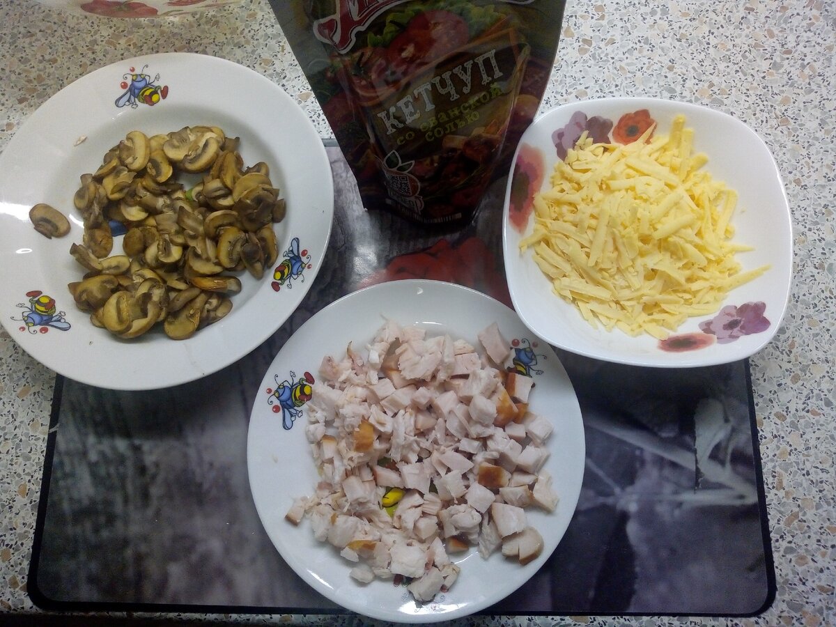 Сверху щедро смазываем кетчупом или томатным соусом.