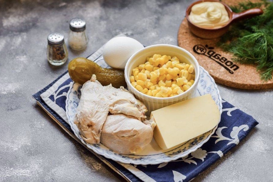 |Сочетание сладкой консервированной кукурузы и отваренного куриного филе — простое, вкусное и всем доступное. На основе этих ингредиентов приготовим салат, который прекрасно подойдет на каждый день.