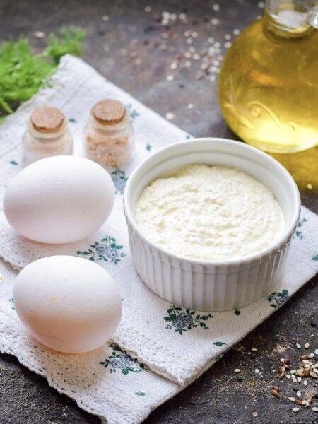 Добавьте в яйца маскарпоне и специи по своему вкусу.
