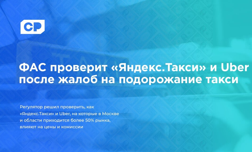 «Доля "Яндекс.Такси" + Uber на территории Москвы и Московской области превышает 50%, ФАС проводит расследование на предмет оценки влияния деятельности агрегаторов такси на рынок пассажирских перевозок такси с точки зрения разумности и обоснованности установления цен и комиссий» , — заявила начальник управления регулирования связи и информационных технологий ФАС Елена Заева.