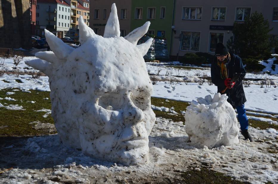 В четверг (18 февраля 2021) на лужайке перед базиликой в Нисе установили скульптуры с изображением двух голов. Якуб Стадник воспользовался возможностью в виде тающего снега. Молодой человек из Нысы - выпускник Нысского художника «Пластика», в настоящее время продолжает свое художественное