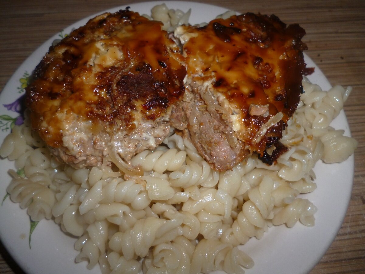 Форму еще раз поставьте в духовку, чтобы майонез подрумянился. Снизу мясо к этому времени тоже слегка поджарится.