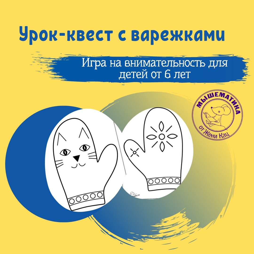 И чтобы такое же прочное математическое "хорошо" и даже "отлично" царило и в ваших занятиях и играх, мы предлагаем вам приобрести наш зимний урок-квест про варежки. С нас картинки красивых варежек с разными узорами, с вас: распечатать их, развесить по комнате, вручить ребенку планшет с контурами 8-ми маленьких варежек и дать задание: "найди и зарисуй, пожалуйста, все узоры варежек, у которых внизу кружочки!" Или "все узоры с треугольниками — твои!" 🧤