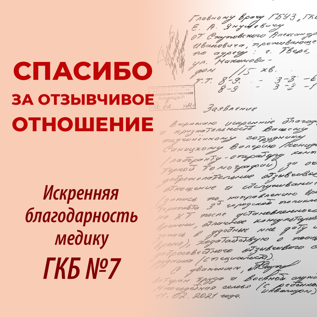 Выражаю искреннюю благодарность и признательность вашему подчиненному сотруднику, Синицкому Валерию Леонидовичу, (лаборанту оператору компьютерной томографии) за очень доброжелательное отзывчивое отношение и обслуживание, (запись по направлению врача-терапевта 3 городской поликлиники на КТ после установленного времени, отличное консультирование, запись в удобные мне дату и время).